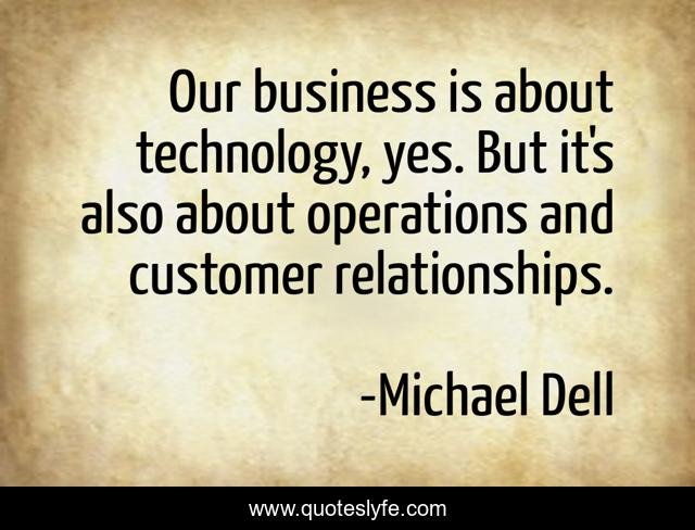 This page presents the quote "Our business is about technology, yes. But it's also about operations and customer relationships.". Author of this quote is Michael Dell. This quote is about customer, technology,.
