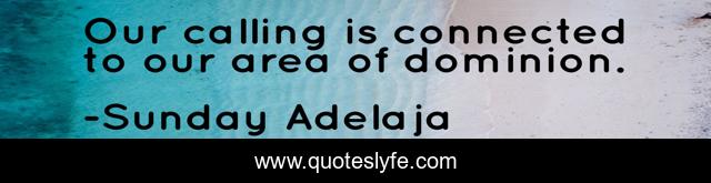 This page presents the quote "Our calling is connected to our area of dominion.". Author of this quote is Sunday Adelaja. This quote is about dominion, calling,.