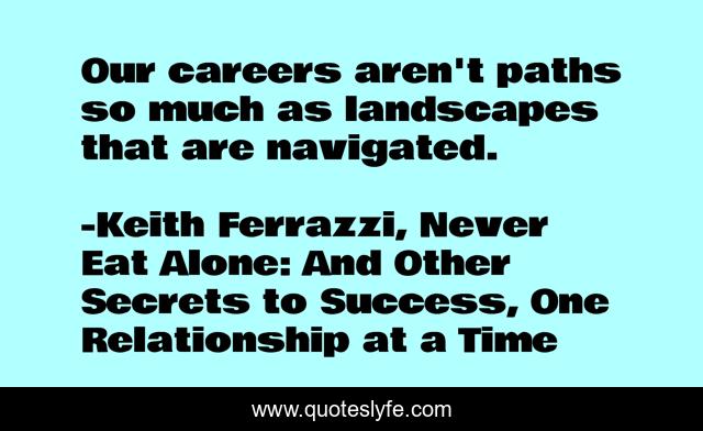 This page presents the quote "Our careers aren't paths so much as landscapes that are navigated.". Author of this quote is Keith Ferrazzi, Never Eat Alone: And Other Secrets to Success, One Relationship at a Time. .