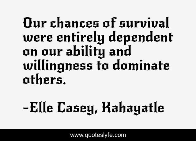 This page presents the quote "Our chances of survival were entirely dependent on our ability and willingness to dominate others.". Author of this quote is Elle Casey, Kahayatle. .