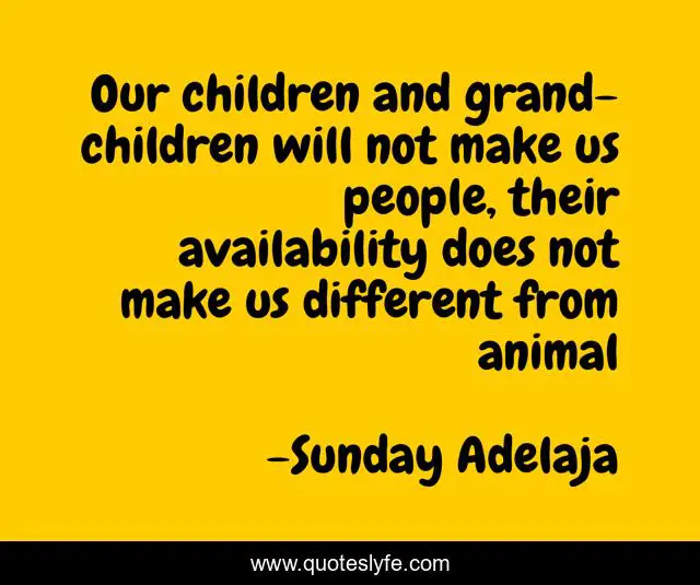 This page presents the quote "Our children and grand-children will not make us people, their availability does not make us different from animal". Author of this quote is Sunday Adelaja. This quote is about children, grand-children, availability, animal, people,.