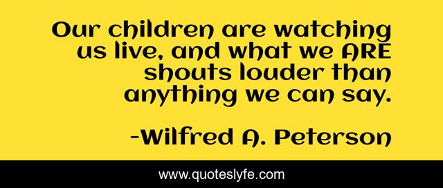 This page presents the quote "Our children are watching us live, and what we ARE shouts louder than anything we can say.". Author of this quote is Wilfred A. Peterson. .