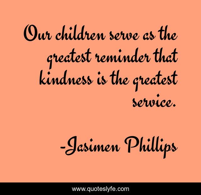 This page presents the quote "Our children serve as the greatest reminder that kindness is the greatest service.". Author of this quote is Jasimen Phillips. This quote is about kindness, children, service, educators,.