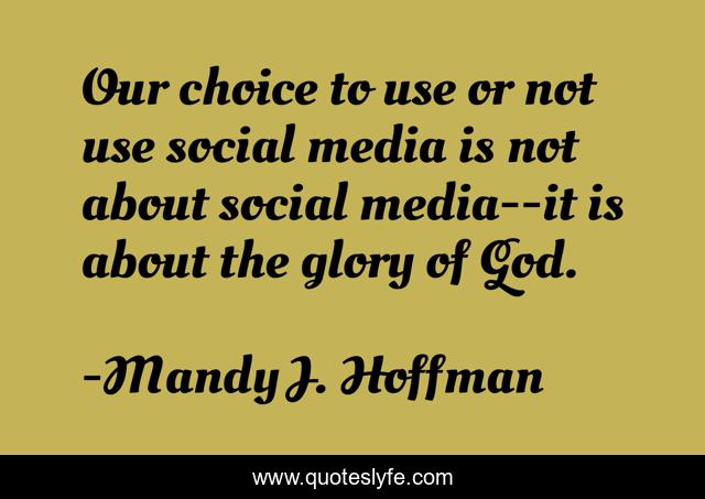 This page presents the quote "Our choice to use or not use social media is not about social media--it is about the glory of God.". Author of this quote is Mandy J. Hoffman. .