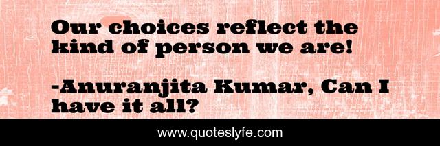 This page presents the quote "Our choices reflect the kind of person we are!". Author of this quote is Anuranjita Kumar, Can I have it all?. .