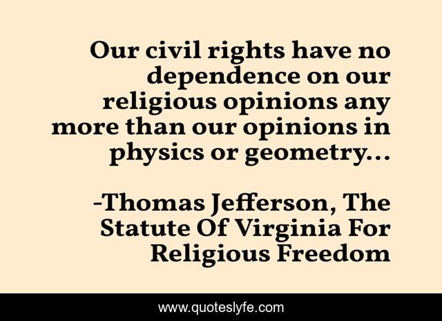 "Thomas Jefferson, The Statute Of Virginia For Religious Freedom Quotes." Quoteslyfe.com, 2025. Fri. 05 Dec. 2025. <https://www.quoteslyfe.com/quote/Our-civil-rights-have-no-dependence-on-41708>.