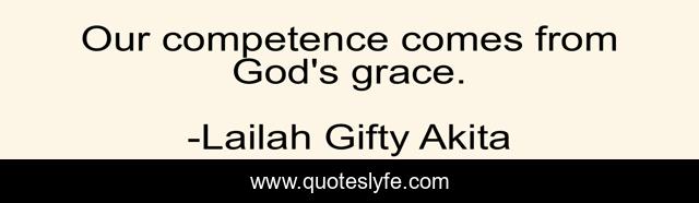 This page presents the quote "Our competence comes from God's grace.". Author of this quote is Lailah Gifty Akita. This quote is about christian, daily-inspiration-grace, religious-faith, grace-of-god, competence, inspiration,.
