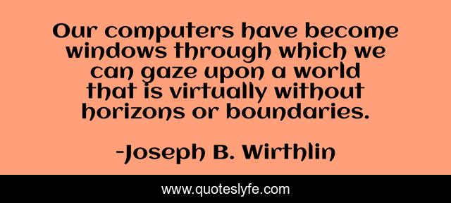 This page presents the quote "Our computers have become windows through which we can gaze upon a world that is virtually without horizons or boundaries.". Author of this quote is Joseph B. Wirthlin. This quote is about windows, world, through,.