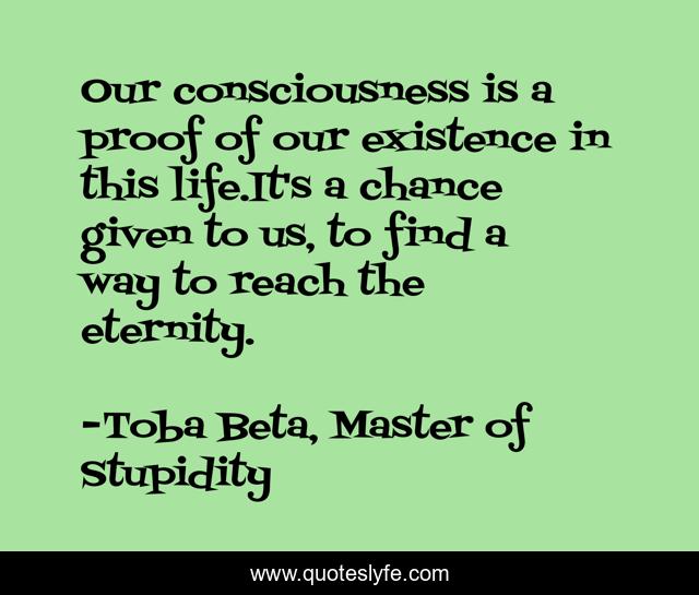 This page presents the quote "Our consciousness is a proof of our existence in this life.It's a chance given to us, to find a way to reach the eternity.". Author of this quote is Toba Beta, Master of Stupidity. This quote is about eternity, chance, life, live,.