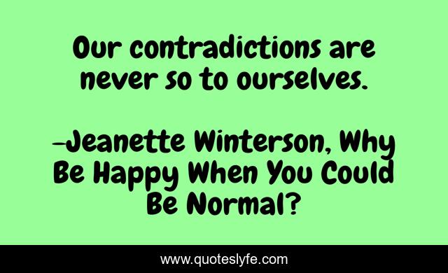 "Jeanette Winterson, Why Be Happy When You Could Be Normal? Quotes." Quoteslyfe.com, 2025. Sun. 07 Dec. 2025. <https://www.quoteslyfe.com/quote/Our-contradictions-are-never-so-to-ourselves-197304>.