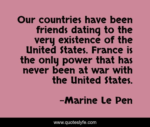 This page presents the quote "Our countries have been friends dating to the very existence of the United States. France is the only power that has never been at war with the United States.". Author of this quote is Marine Le Pen. This quote is about friends, war, power,.