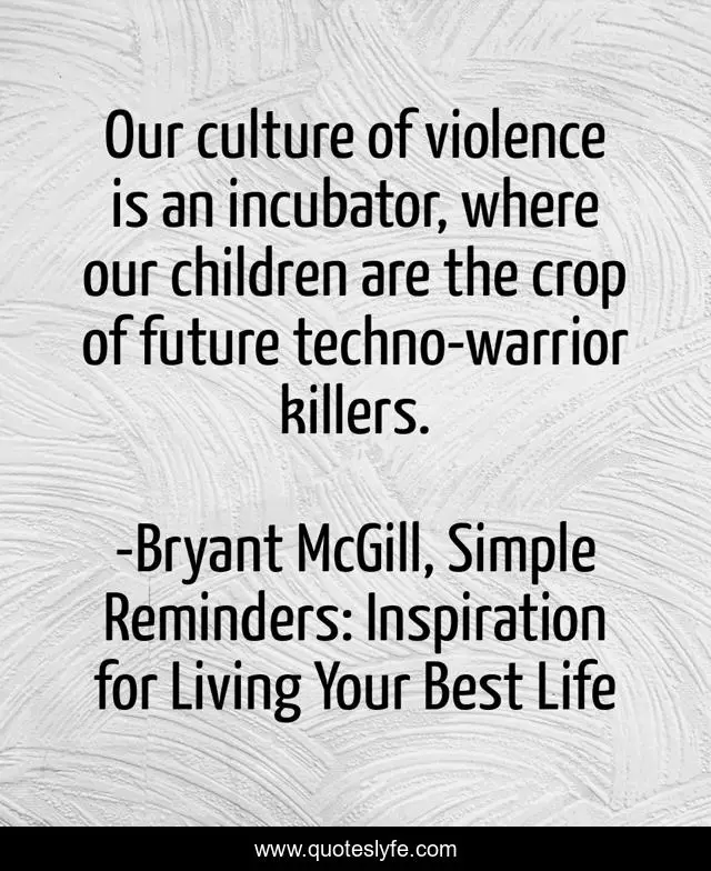 "Bryant McGill, Simple Reminders: Inspiration for Living Your Best Life Quotes." Quoteslyfe.com, 2025. Mon. 08 Dec. 2025. <https://www.quoteslyfe.com/quote/Our-culture-of-violence-is-an-incubator-100001>.
