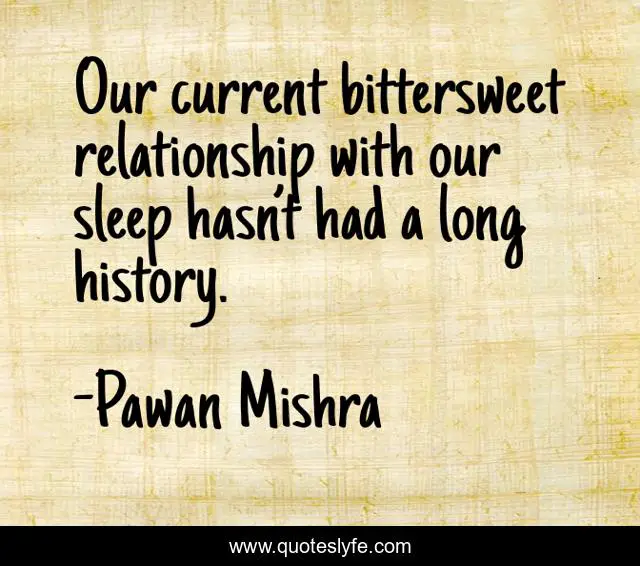"Pawan Mishra Quotes." Quoteslyfe.com, 2025. Fri. 05 Dec. 2025. <https://www.quoteslyfe.com/quote/Our-current-bittersweet-relationship-with-our-sleep-117780>.