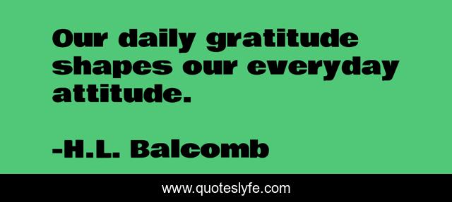 "H.L. Balcomb Quotes." Quoteslyfe.com, 2025. Mon. 08 Dec. 2025. <https://www.quoteslyfe.com/quote/Our-daily-gratitude-shapes-our-everyday-attitude-73558>.