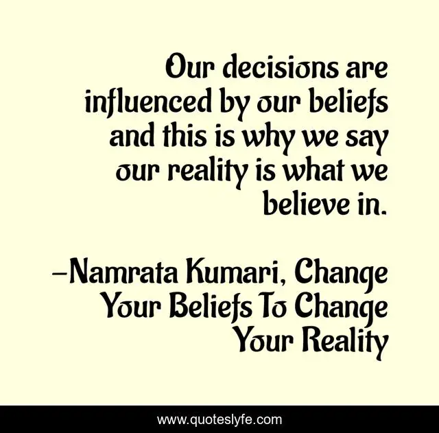 "Namrata Kumari, Change Your Beliefs To Change Your Reality Quotes." Quoteslyfe.com, 2025. Fri. 05 Dec. 2025. <https://www.quoteslyfe.com/quote/Our-decisions-are-influenced-by-our-beliefs-93791>.