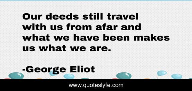 This page presents the quote "Our deeds still travel with us from afar and what we have been makes us what we are.". Author of this quote is George Eliot. .