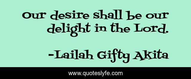 This page presents the quote "Our desire shall be our delight in the Lord.". Author of this quote is Lailah Gifty Akita. This quote is about delight, desire, reli, christian,.