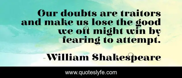 "William Shakespeare Quotes." Quoteslyfe.com, 2025. Fri. 05 Dec. 2025. <https://www.quoteslyfe.com/quote/Our-doubts-are-traitors-and-make-us-275833>.
