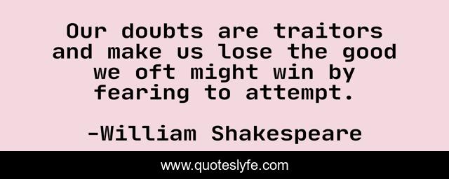 This page presents the quote "Our doubts are traitors and make us lose the good we oft might win by fearing to attempt.". Author of this quote is William Shakespeare. This quote is about win, lose, doubts,.