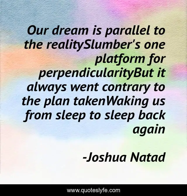 "Joshua Natad Quotes." Quoteslyfe.com, 2025. Fri. 05 Dec. 2025. <https://www.quoteslyfe.com/quote/Our-dream-is-parallel-to-the-realitySlumber-131325>.