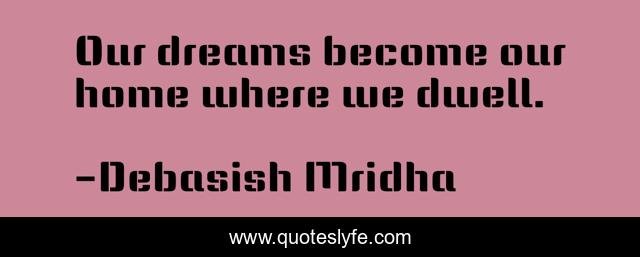 This page presents the quote "Our dreams become our home where we dwell.". Author of this quote is Debasish Mridha. This quote is about dreams-become-our-home, philosophy, debasish-mridha, effect-of-our-dreams, quotes, inspirational, enthusiasm, debasish-mridha-m-d, dreams,.