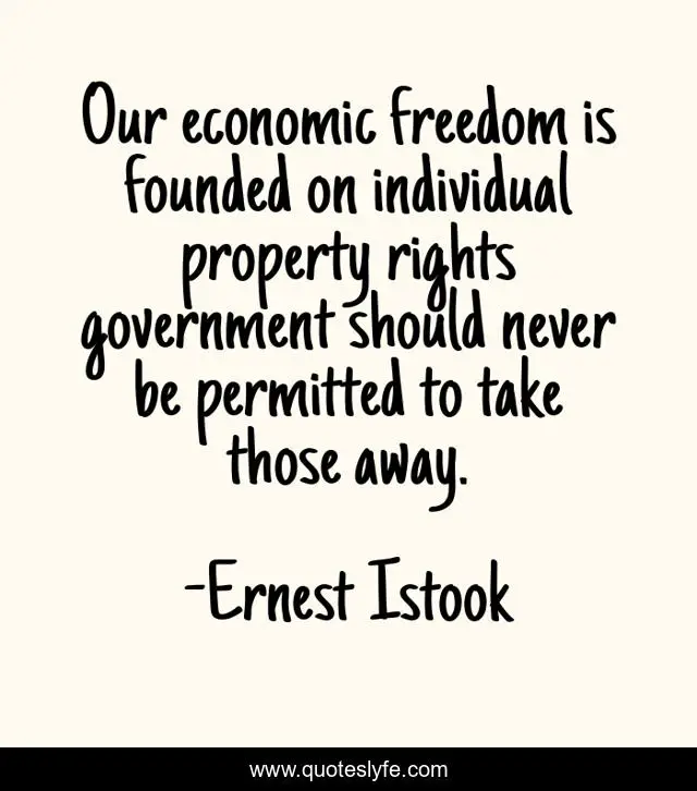 This page presents the quote "Our economic freedom is founded on individual property rights government should never be permitted to take those away.". Author of this quote is Ernest Istook. This quote is about freedom, economic, rights,.