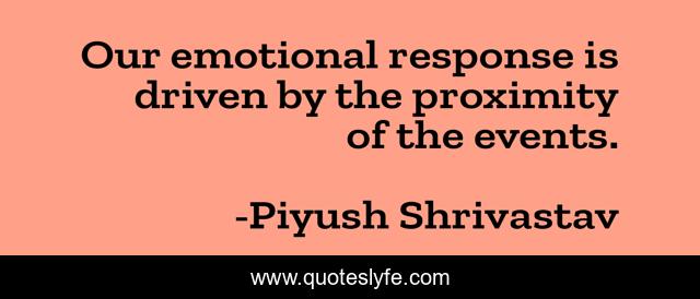 This page presents the quote "Our emotional response is driven by the proximity of the events.". Author of this quote is Piyush Shrivastav. This quote is about facts-of-life, emotions, events, facts, response, think,.