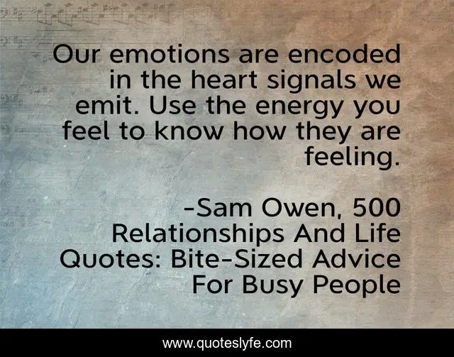 "Sam Owen, 500 Relationships And Life Quotes: Bite-Sized Advice For Busy People Quotes." Quoteslyfe.com, 2025. Fri. 05 Dec. 2025. <https://www.quoteslyfe.com/quote/Our-emotions-are-encoded-in-the-heart-35760>.