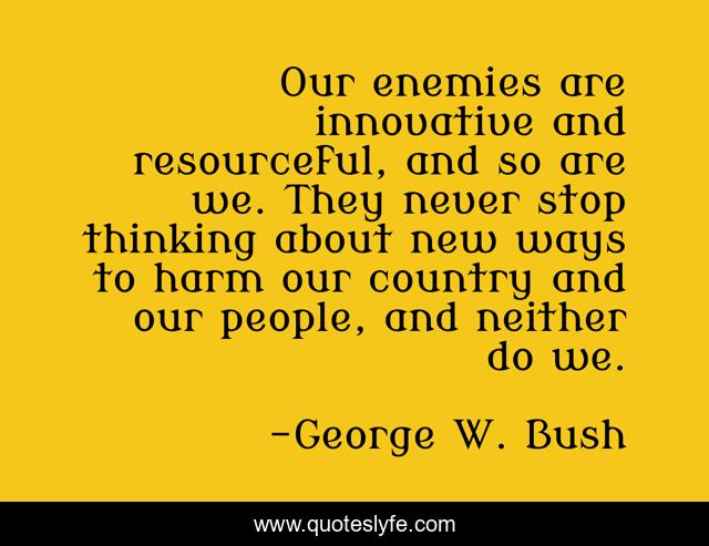 "George W. Bush Quotes." Quoteslyfe.com, 2025. Sat. 06 Dec. 2025. <https://www.quoteslyfe.com/quote/Our-enemies-are-innovative-and-resourceful-and-6634>.