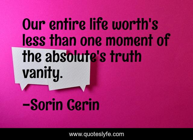 This page presents the quote "Our entire life worth's less than one moment of the absolute's truth vanity.". Author of this quote is Sorin Cerin. .