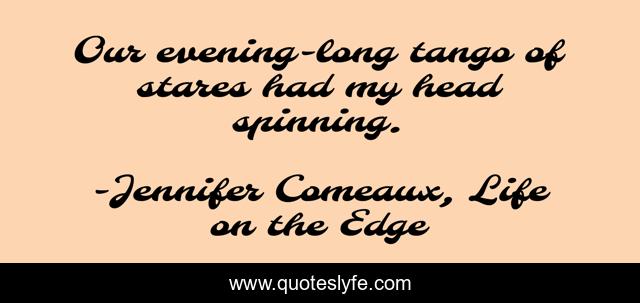 This page presents the quote "Our evening-long tango of stares had my head spinning.". Author of this quote is Jennifer Comeaux, Life on the Edge. This quote is about young-adult-romance, contemporary-romance,.
