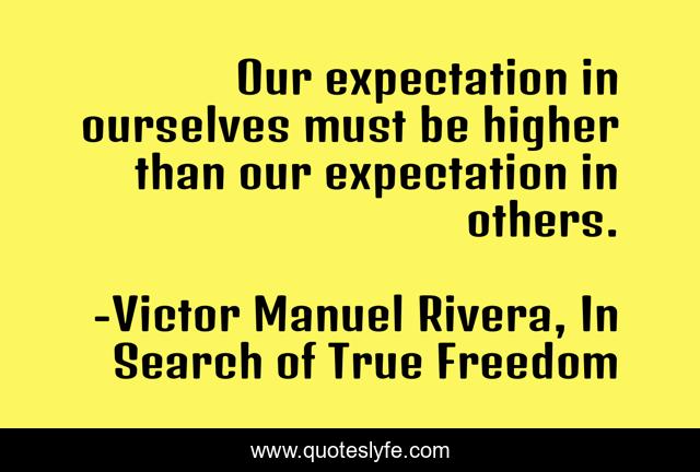 "Victor Manuel Rivera, In Search of True Freedom Quotes." Quoteslyfe.com, 2025. Sat. 06 Dec. 2025. <https://www.quoteslyfe.com/quote/Our-expectation-in-ourselves-must-be-higher-54621>.