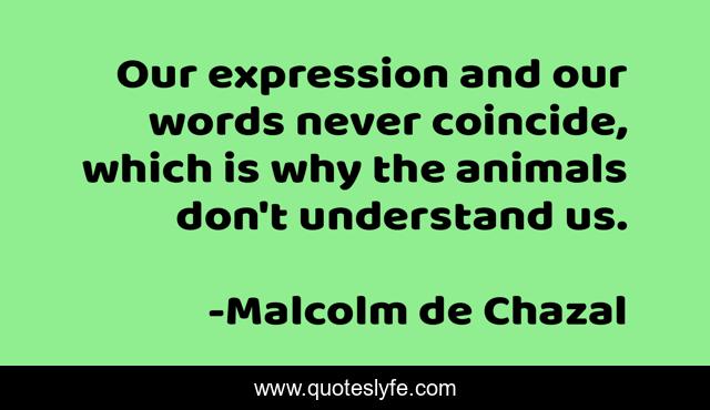 This page presents the quote "Our expression and our words never coincide, which is why the animals don't understand us.". Author of this quote is Malcolm de Chazal. This quote is about meaning, animals, contradiction, language,.