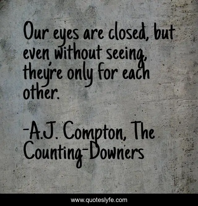 This page presents the quote "Our eyes are closed, but even without seeing, they’re only for each other.". Author of this quote is A.J. Compton, The Counting-Downers. This quote is about true-love, love, soulmates, romance, passion, affection,.