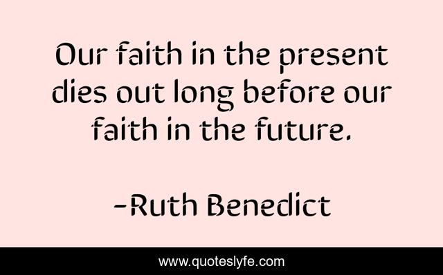 This page presents the quote "Our faith in the present dies out long before our faith in the future.". Author of this quote is Ruth Benedict. .