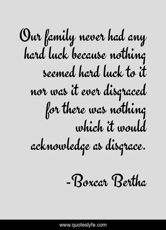 "Boxcar Bertha Quotes." Quoteslyfe.com, 2025. Sat. 06 Dec. 2025. <https://www.quoteslyfe.com/quote/Our-family-never-had-any-hard-luck-276089>.
