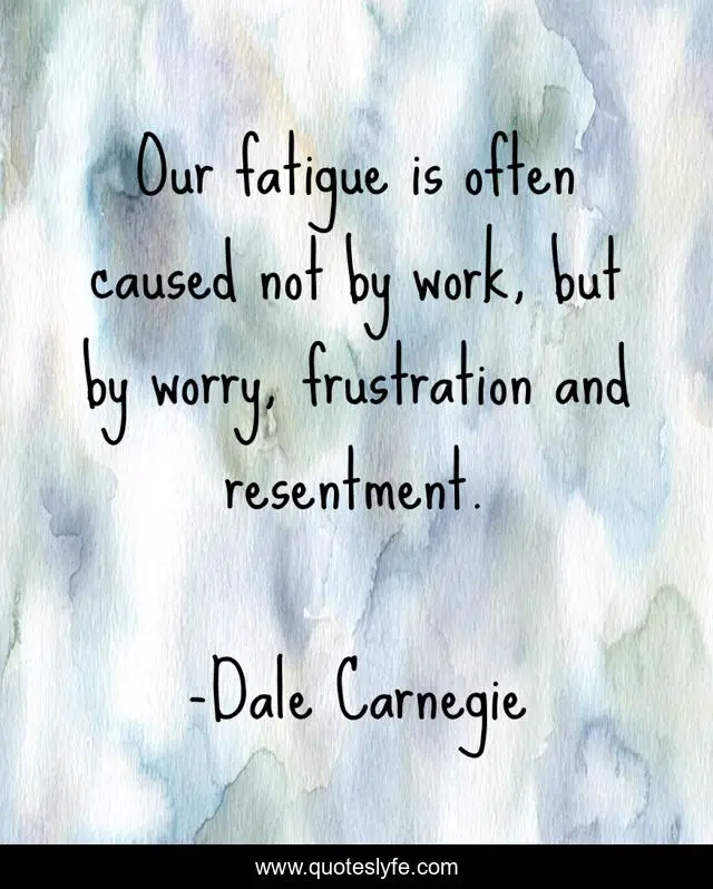 This page presents the quote "Our fatigue is often caused not by work, but by worry, frustration and resentment.". Author of this quote is Dale Carnegie. This quote is about fatigue, frustration, worry,.