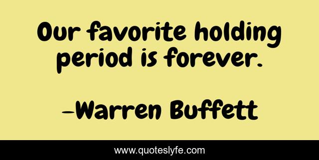 This page presents the quote "Our favorite holding period is forever.". Author of this quote is Warren Buffett. This quote is about forever, favorite, holding,.