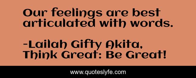 "Lailah Gifty Akita, Think Great: Be Great! Quotes." Quoteslyfe.com, 2025. Mon. 08 Dec. 2025. <https://www.quoteslyfe.com/quote/Our-feelings-are-best-articulated-with-words-95148>.