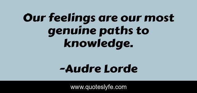 "Audre Lorde Quotes." Quoteslyfe.com, 2025. Mon. 08 Dec. 2025. <https://www.quoteslyfe.com/quote/Our-feelings-are-our-most-genuine-paths-30455>.