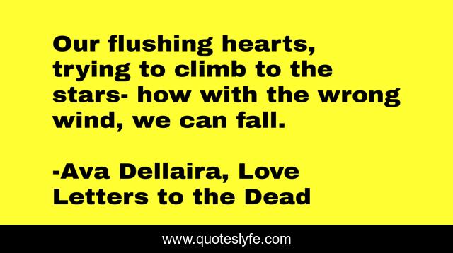 This page presents the quote "Our flushing hearts, trying to climb to the stars- how with the wrong wind, we can fall.". Author of this quote is Ava Dellaira, Love Letters to the Dead. This quote is about poem, life,.