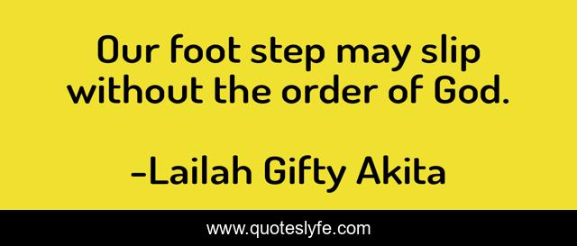 This page presents the quote "Our foot step may slip without the order of God.". Author of this quote is Lailah Gifty Akita. This quote is about god, footstep, stairs, christian,.