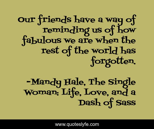 "Mandy Hale, The Single Woman: Life, Love, and a Dash of Sass Quotes." Quoteslyfe.com, 2025. Sat. 06 Dec. 2025. <https://www.quoteslyfe.com/quote/Our-friends-have-a-way-of-reminding-95549>.