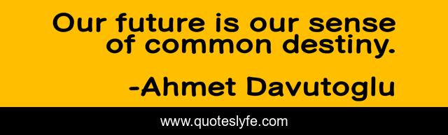 This page presents the quote "Our future is our sense of common destiny.". Author of this quote is Ahmet Davutoglu. This quote is about sense, common, destiny,.