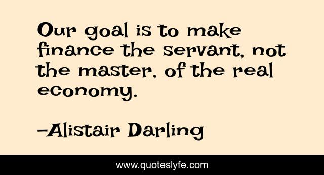 This page presents the quote "Our goal is to make finance the servant, not the master, of the real economy.". Author of this quote is Alistair Darling. This quote is about real, goal, economy,.