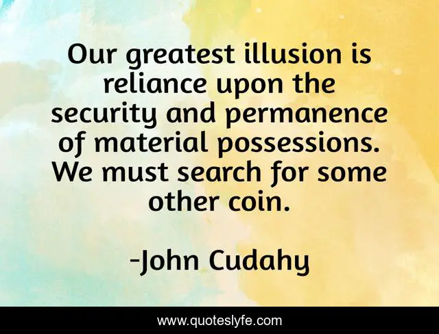 This page presents the quote "Our greatest illusion is reliance upon the security and permanence of material possessions. We must search for some other coin.". Author of this quote is John Cudahy. .