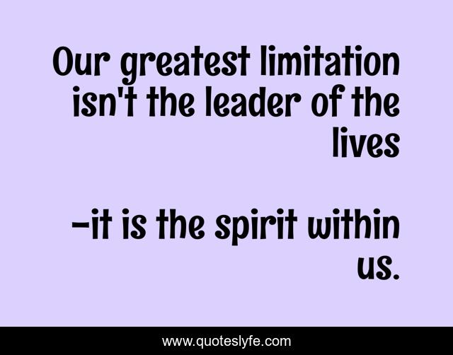 "it is the spirit within us. Quotes." Quoteslyfe.com, 2025. Fri. 05 Dec. 2025. <https://www.quoteslyfe.com/quote/Our-greatest-limitation-isn-t-the-leader-64046>.