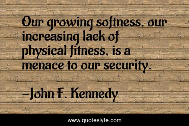 This page presents the quote "Our growing softness, our increasing lack of physical fitness, is a menace to our security.". Author of this quote is John F. Kennedy. This quote is about growing, security,.
