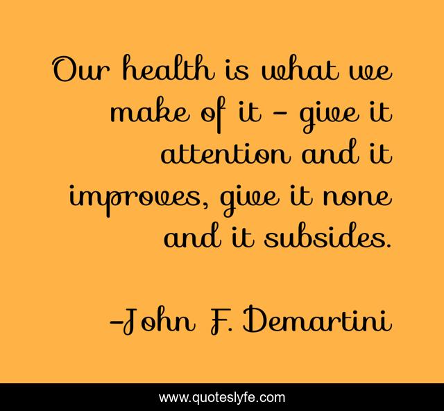 This page presents the quote "Our health is what we make of it - give it attention and it improves, give it none and it subsides.". Author of this quote is John F. Demartini. This quote is about wellness, health,.