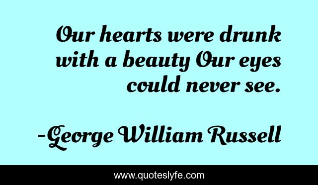 This page presents the quote "Our hearts were drunk with a beauty Our eyes could never see.". Author of this quote is George William Russell. This quote is about eyes, see, beauty,.